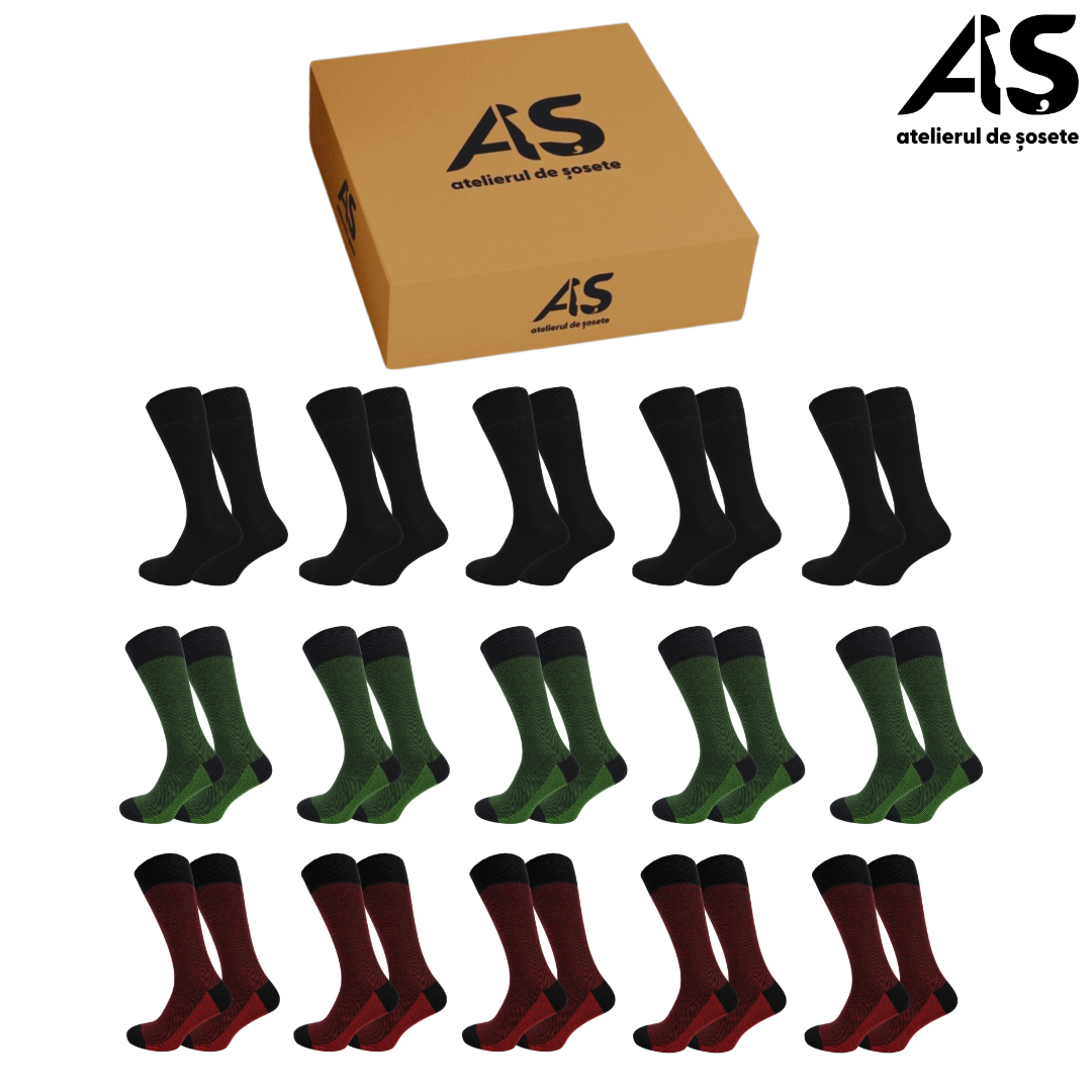 Cutie Șosete Bărbați EXTRA FINE din Bumbac – Multicolor Închis, 15 Perechi
